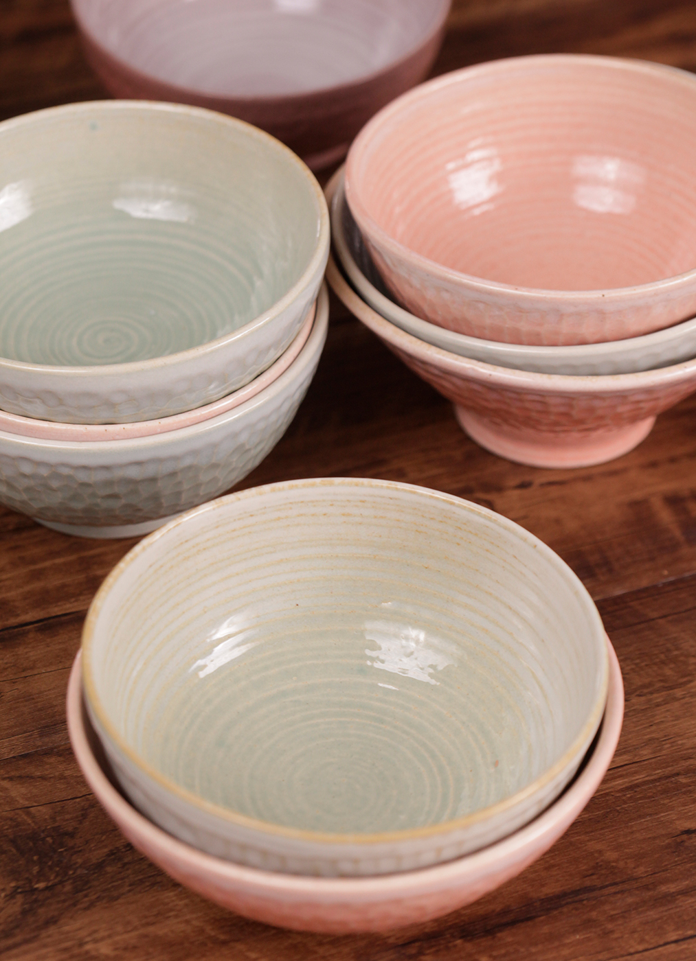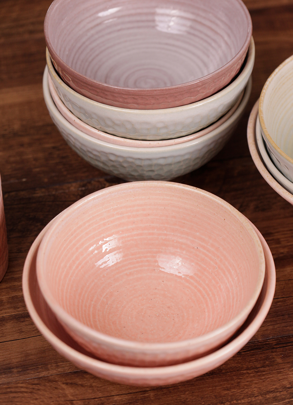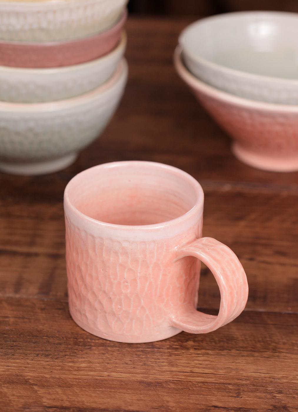 粉色系列采用珍珠淘泥,表面微微有这沙粒感的触觉。细腻中带着一点倔强的颗粒感。